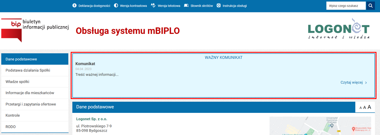 - sekcja ZAWARTOŚĆ BIP (więcej informacji w dalszej części niniejszej instrukcji),
