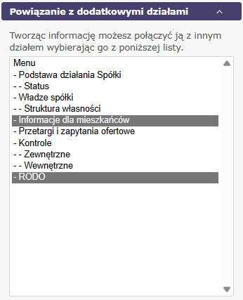 - Rozwinąć panel Powiązanie z dodatkowymi działami.