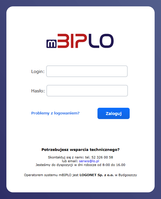 Aktualne namiary kontaktowe do naszych specjalistów dostępne są na stronie głównej panelu systemu mBIPLO. Istnieje również możliwość wysłania wiadomości poprzez formularz kontaktowy z poziomu panelu administracyjnego.