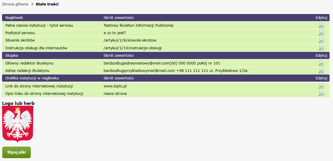 Modyfikacja treści główny redaktor oraz adres redakcji biuletynu - wideo instrukcja