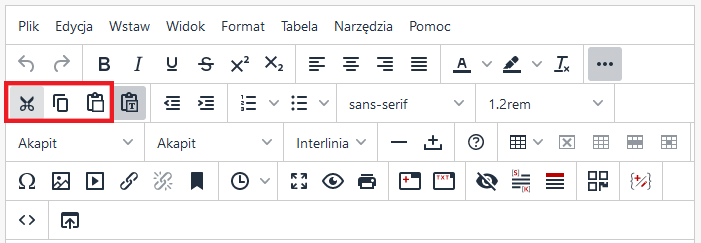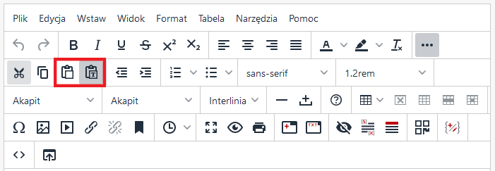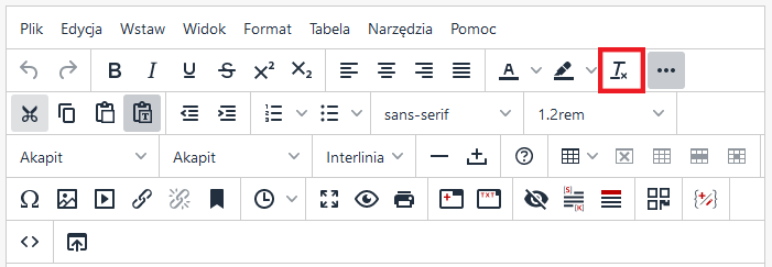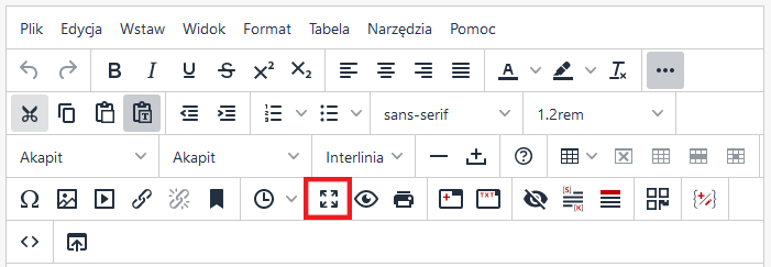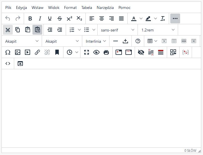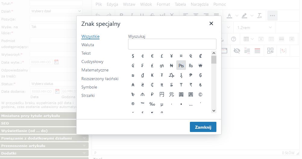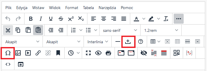 W edytorze dostępne są też przyciski do wstawiania znaków specjalnych oraz twardej spacji: