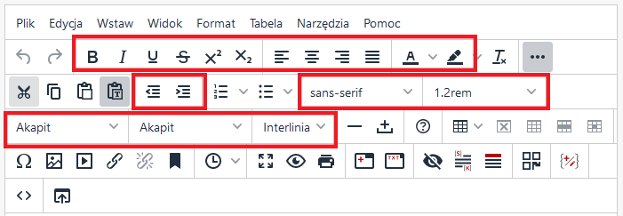 - Fonty - wybór kroju czcionki (zalecane stosowanie standardowo narzuconej czcionki).