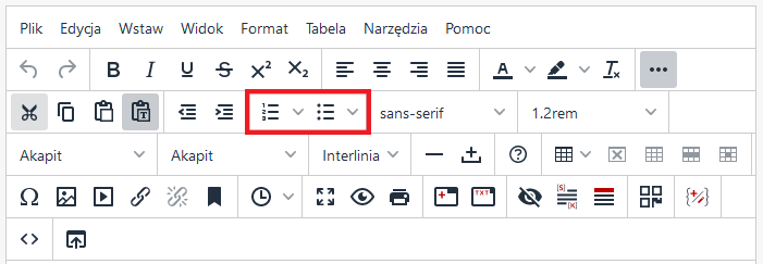 W celu dobrego ułożenia tekstu na stronie należy wykorzystywać listy numerowane i punktowane. Służą do tego przyciski:
