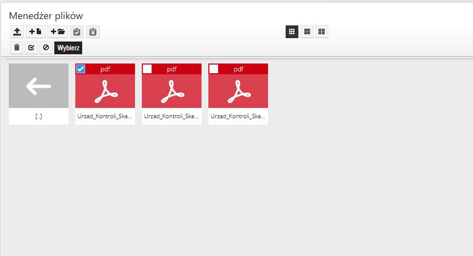 Pamiętaj aby wszystkie pliki dodawane do Menadżera plików układać w folderach. W tym celu dodaj odpowiednie foldery. Unikaj wgrywania plików luzem do głównego katalogu Menadżera plików.