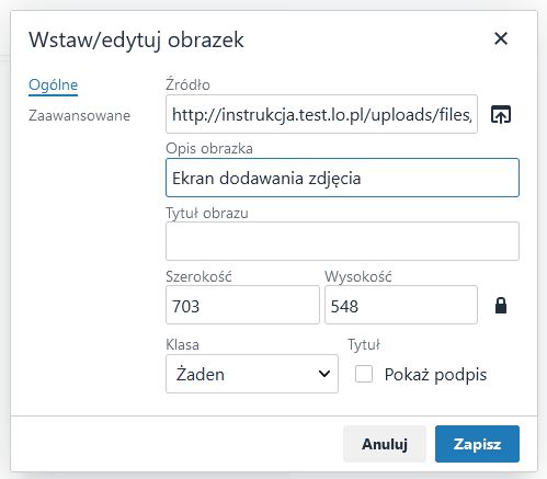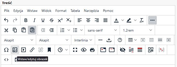 W edytorze jest możliwość dodawania zdjęć. W celu wstawienia zdjęcia w treści artykułu należy: