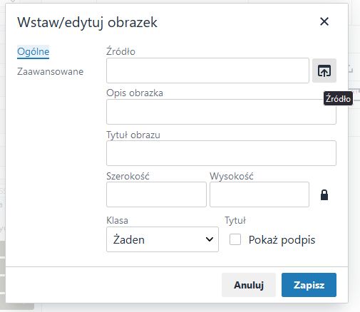 - Wybrać ikonę Wstaw/edytuj obrazek.