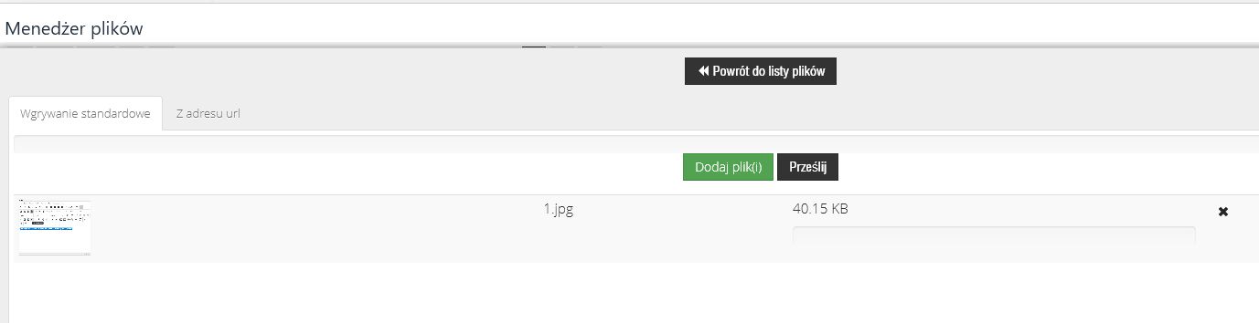 - Na liście plików klikamy w wybraną miniaturkę, która ma być dodana do treści artykułu.