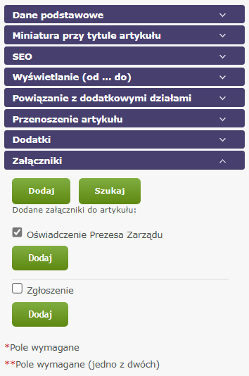 Artykuł – jest treścią wyświetlaną w portalu, tekst, zdjęcia, linki, pliki do pobrania. Każdy artykuł posiada skrót tzw. Lead oraz pełną treść.
